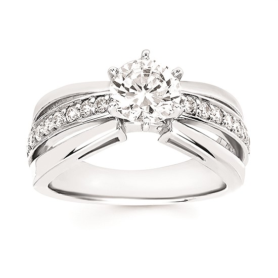 Engagement Ring Modern Bridal: 1/3 Ctw. Diamond Semi Mount shown with 1 Ct. Round Center Diamond in 14K Gold