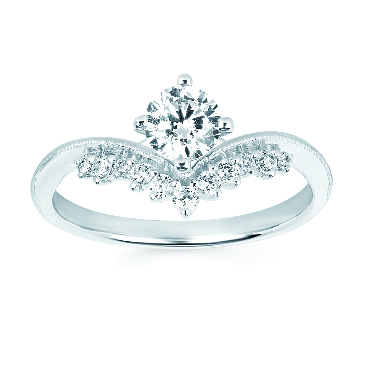 Engagement Ring Forever ElegantĀ® 1/7 Ctw. Diamond Semi Mount shown with 1/2 Ct. Round Center Diamond in 14K Gold