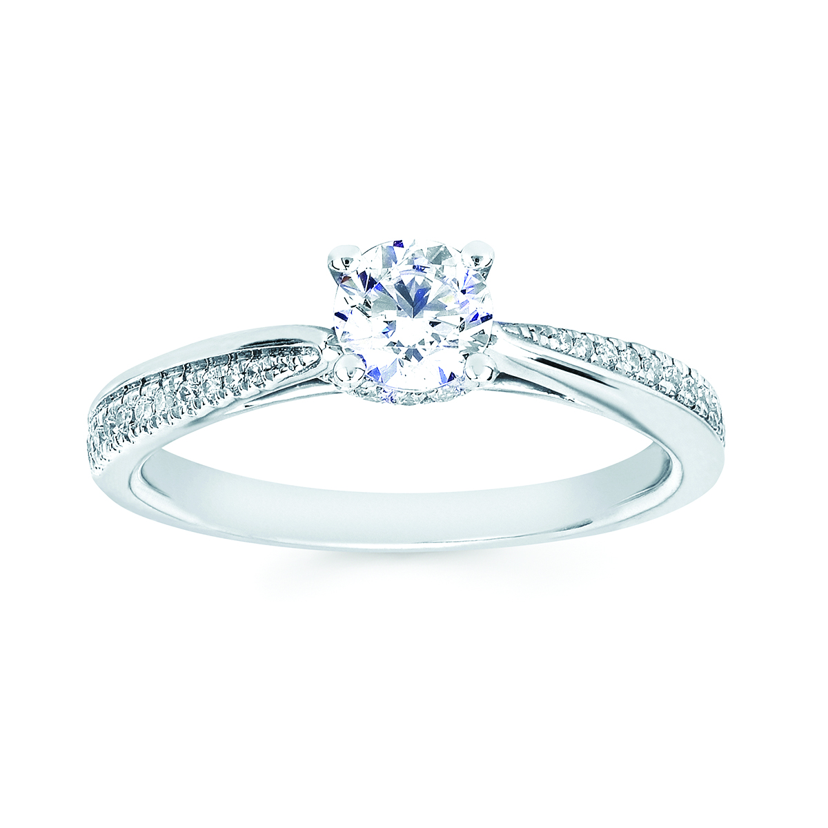 Engagement Ring Modern Bridal: 1/8 Ctw. Diamond Semi Mount shown with a 1/2 Ct. Round Center Diamond in 14K Gold