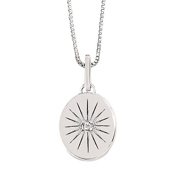 Diamond Oval Disc Pendant In Sterling Silver With 18" Chain