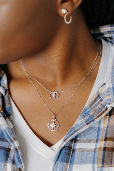 0.05 Ctw Diamond Compass Pendant In Sterling Silver With 18" Chain